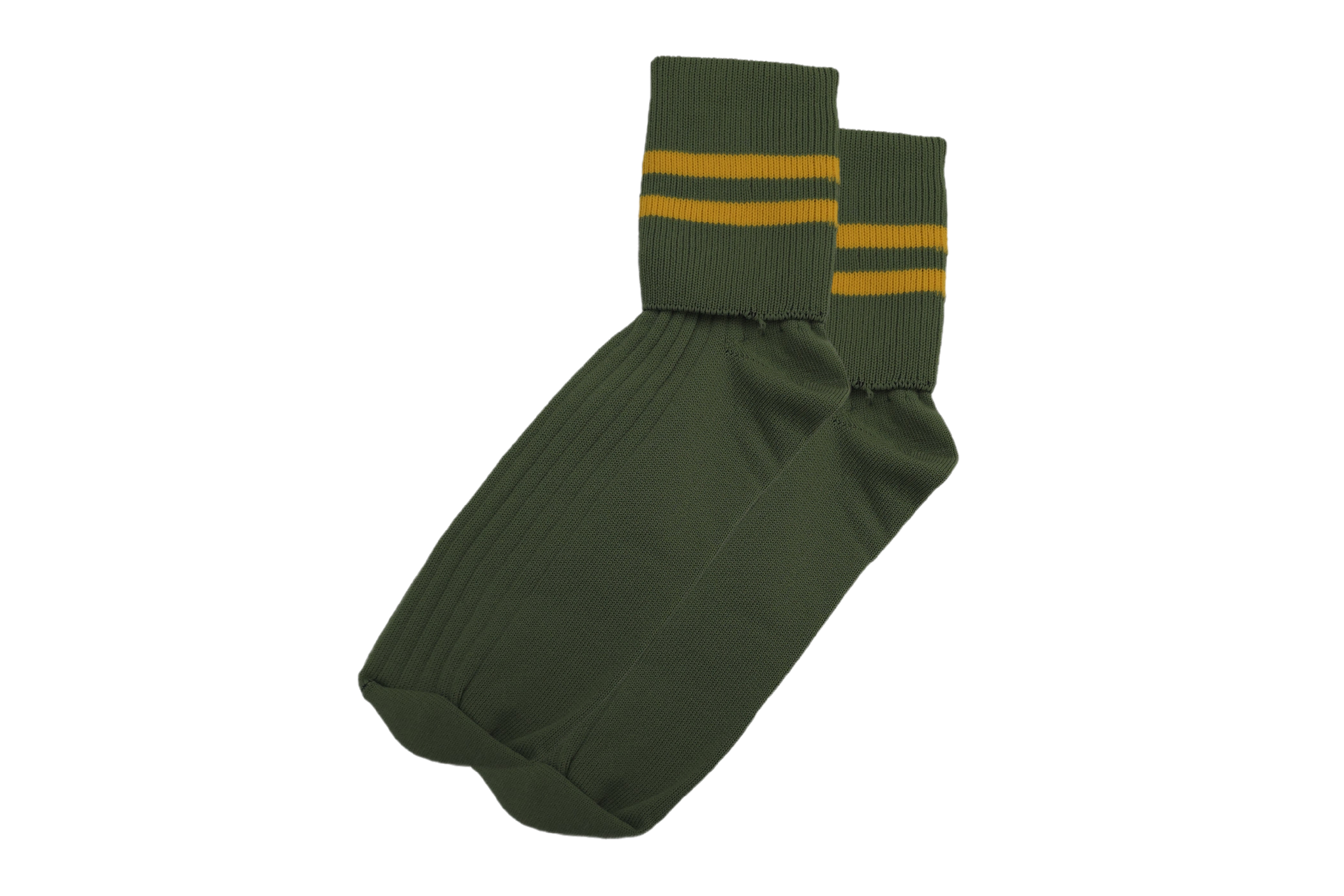 Olive socks with two gold stripes