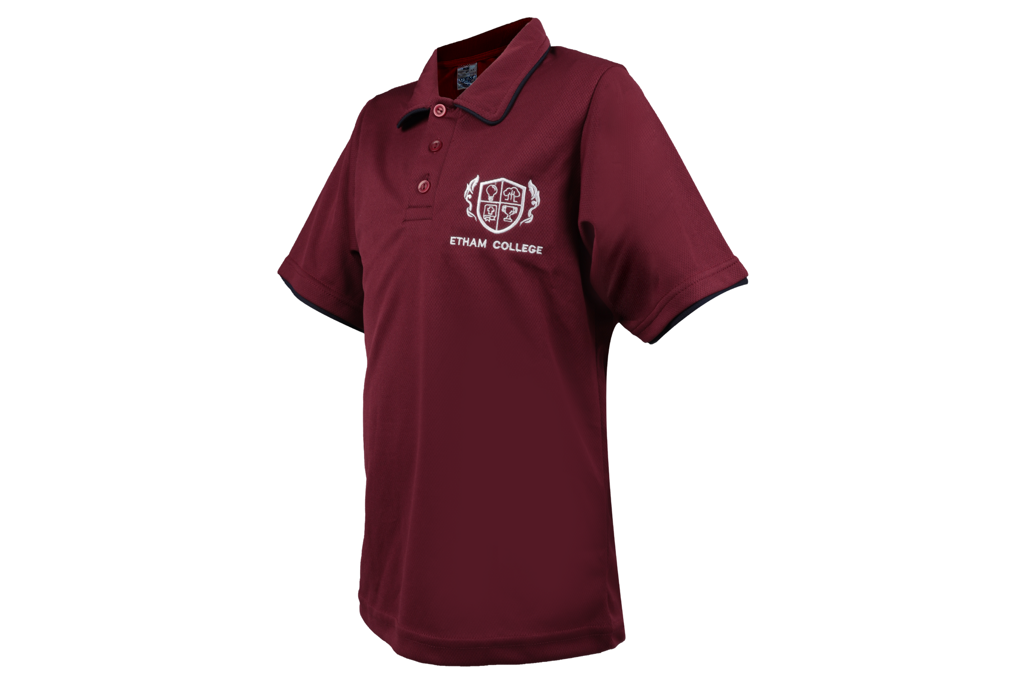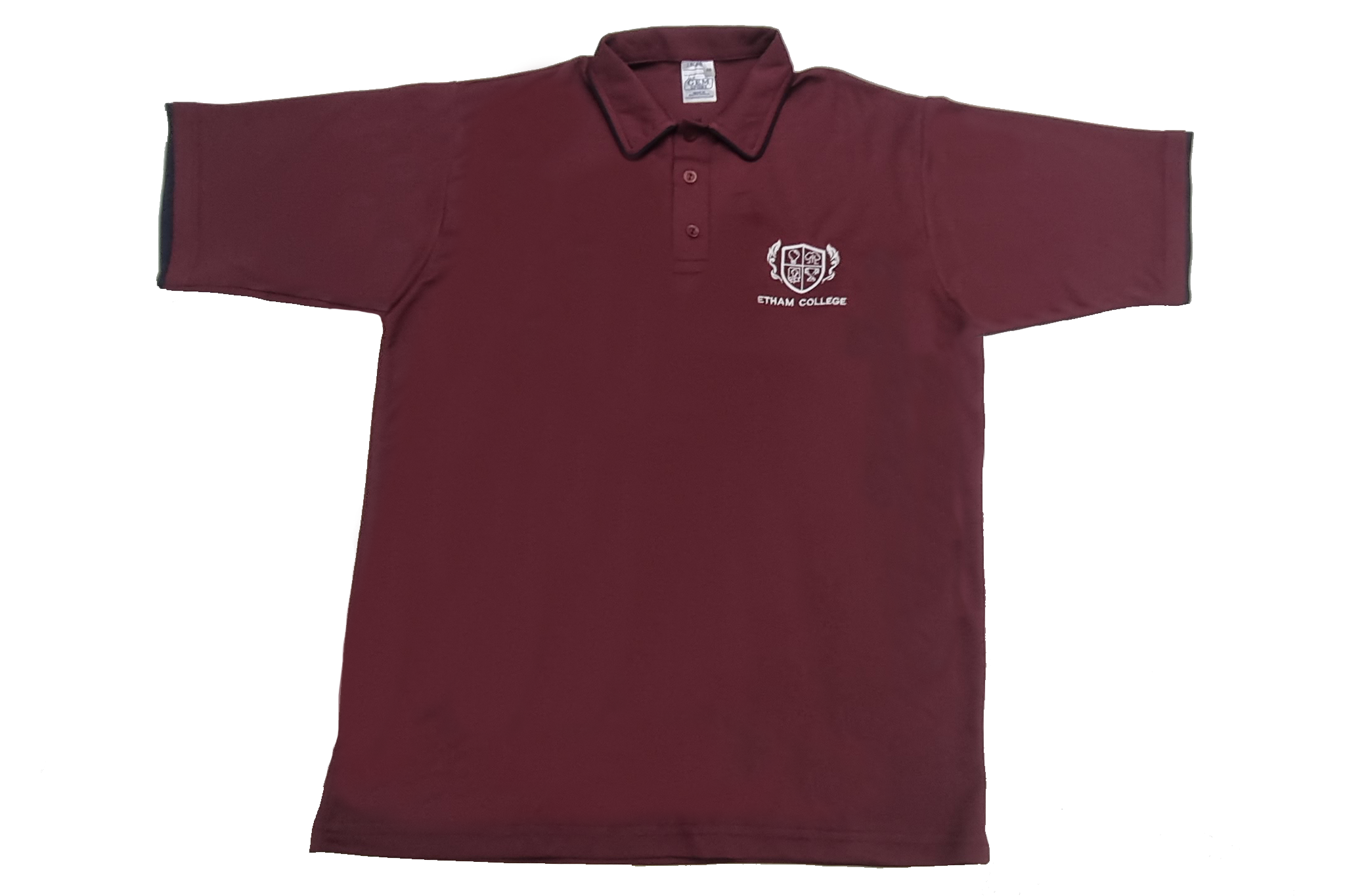 Navy short sleeve golf shirt with Etham emblem embroidered onto the golf shirt.