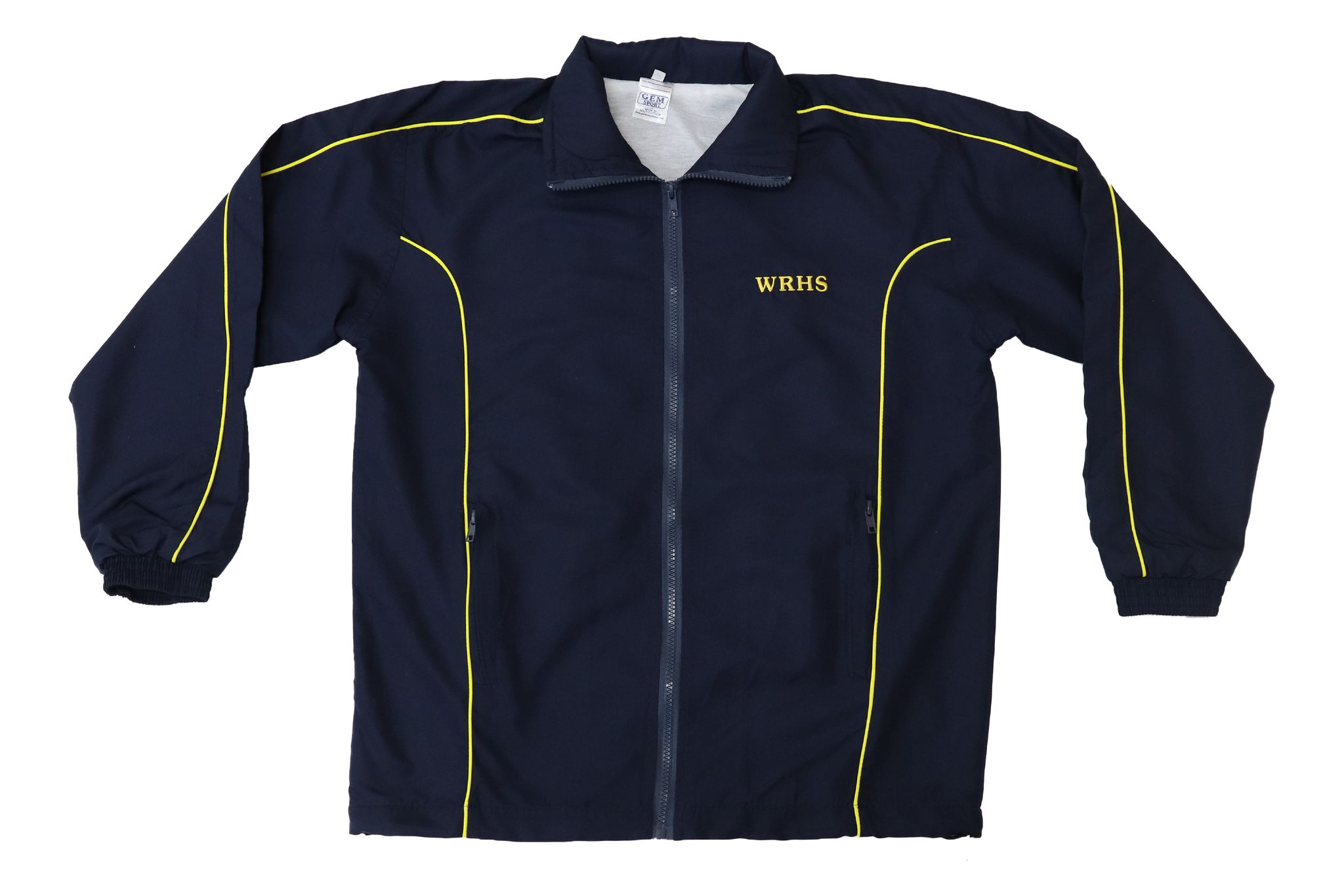Navy Tracksuit jacket with yellow piping and WRHS embroidered