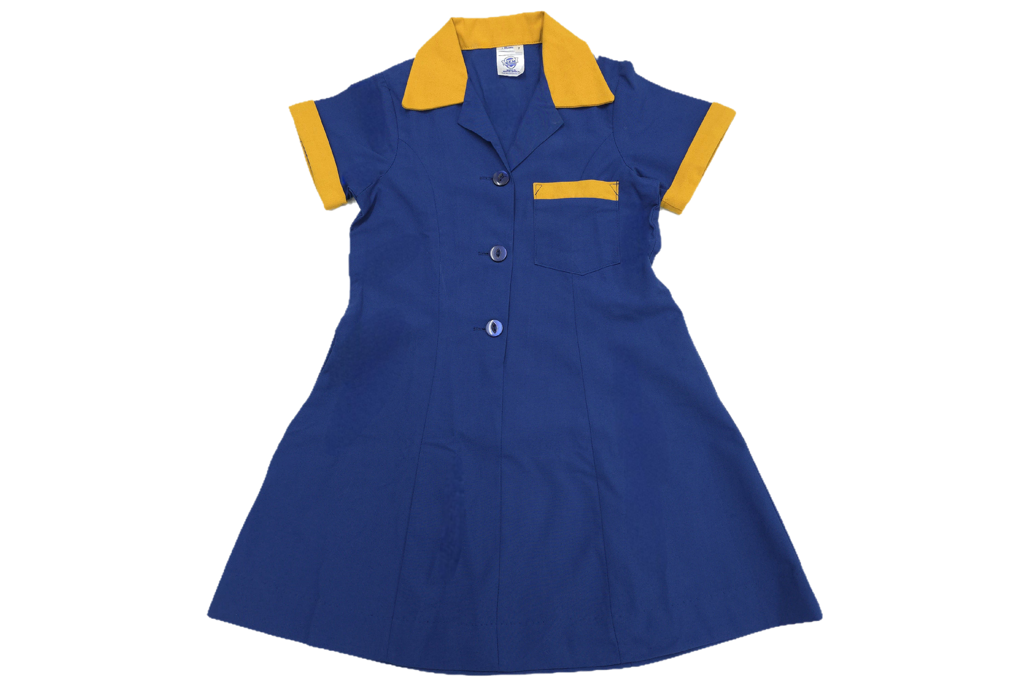 Plain Royal dress with gold shirt collar, cuff and pocket
