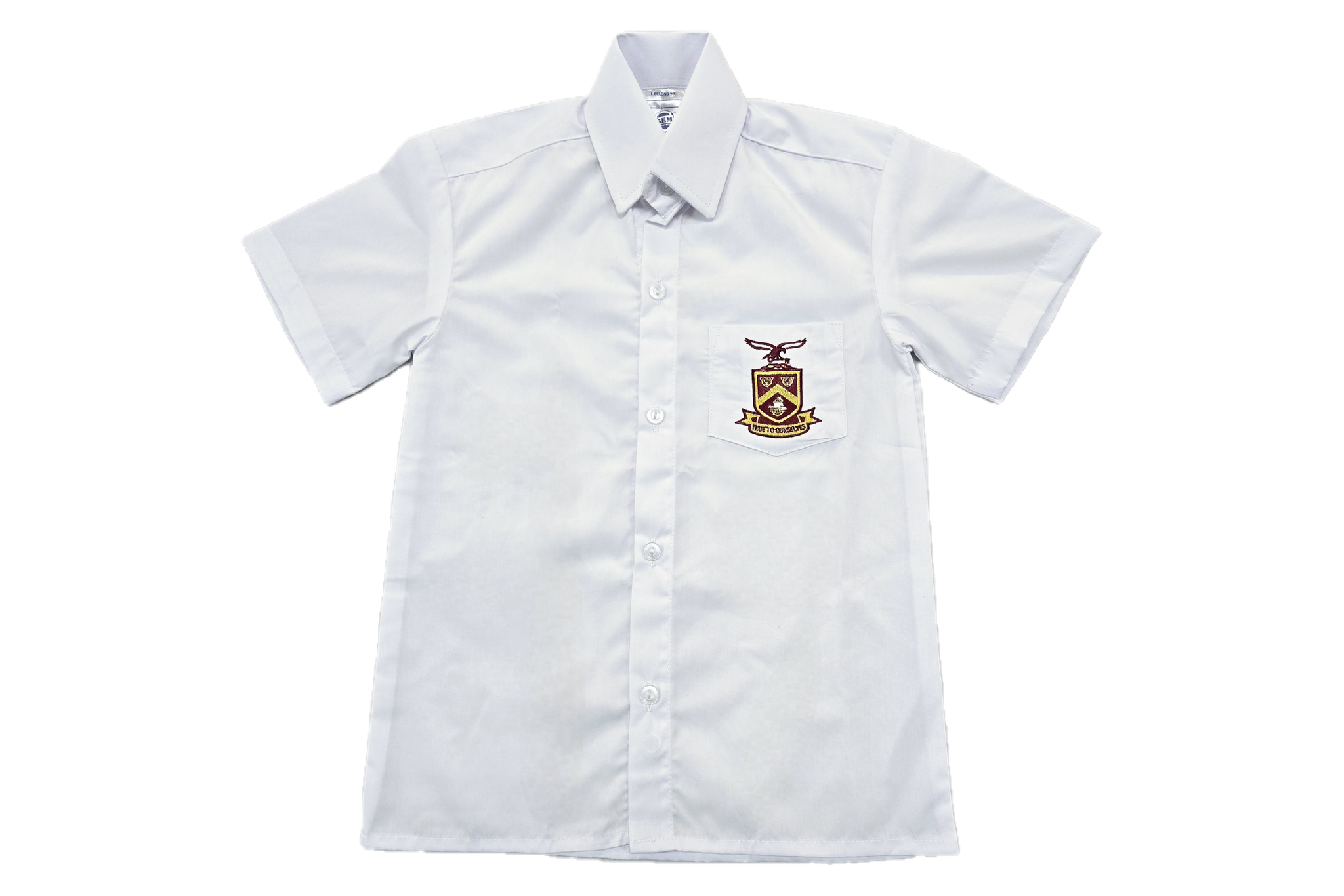 Short sleeve white shirt. It has the Atholl heights Primary emblem embroidered onto it.