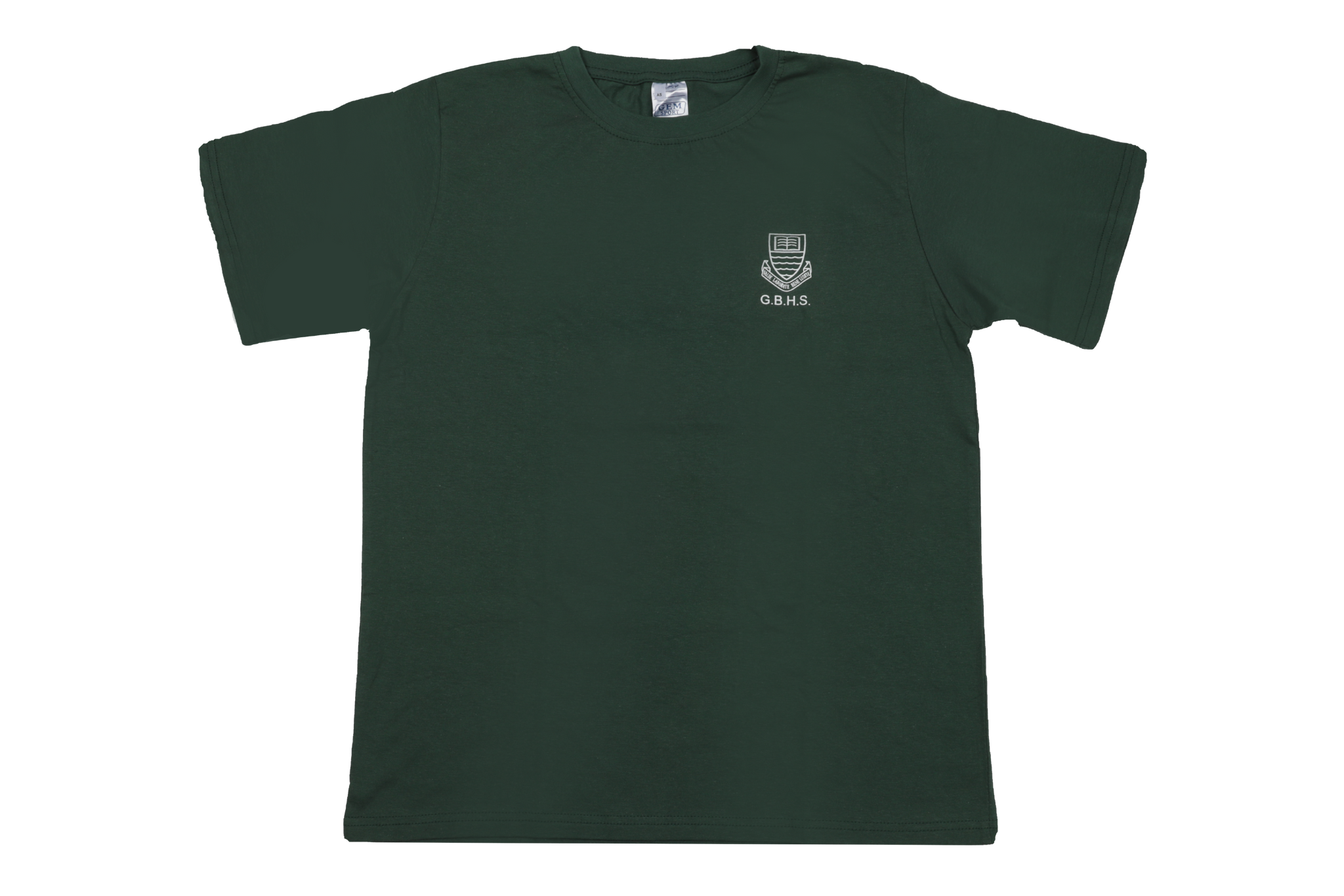 Plain Bottle Green t-shirt with Grosvenor Boys High School logo printed
